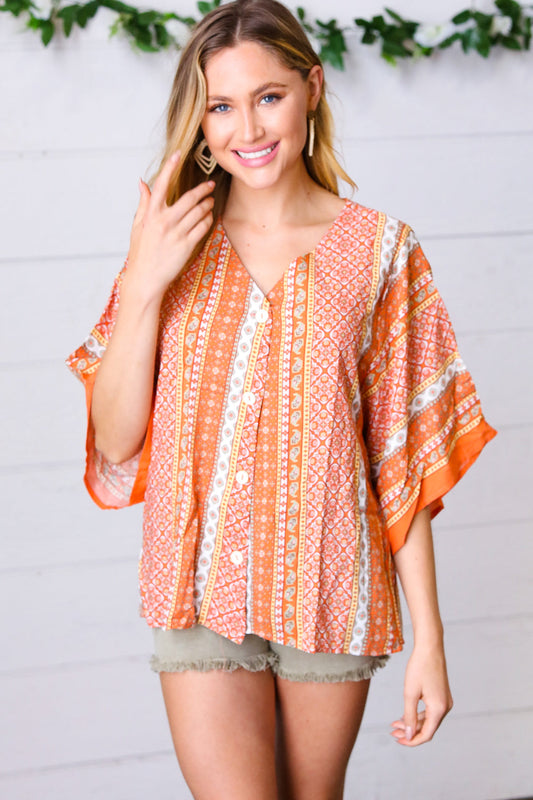 Sold outAqua Boho Patchwork V Neck Woven Top