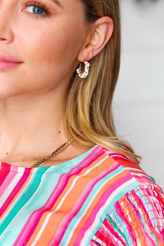 WOMEN'S BLACK & IVORY STRIPE COLD SHOULDER BLOUSE