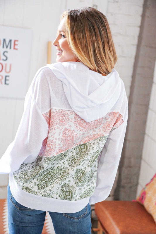 Yellow & Aqua Two-Tone Boho Print Back Tie Tank