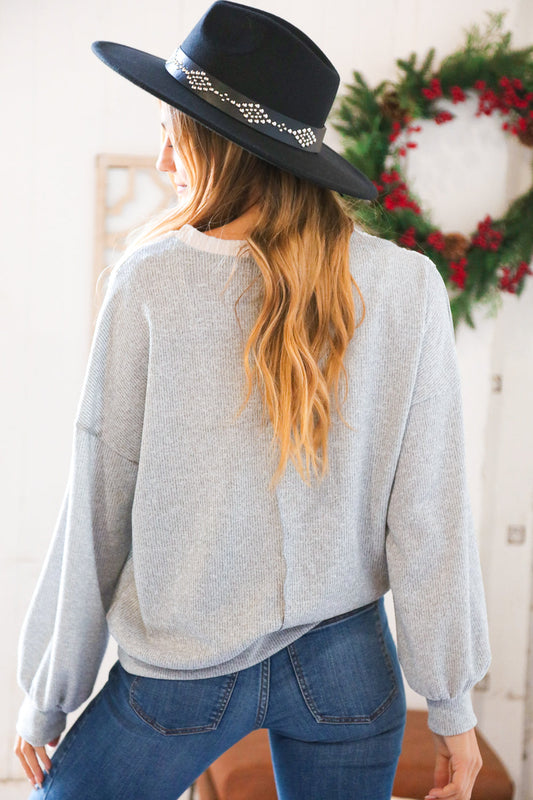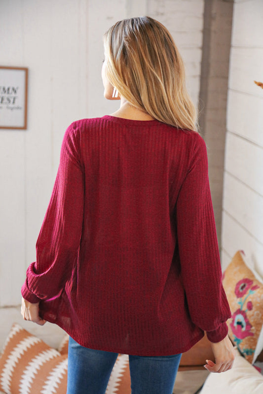 Sold outWine Rib Babydoll Bubble Sleeve Top