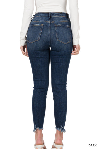Zenana HIGH-RISE BUTTON FLY RAW HEM ANKLE SKINNY