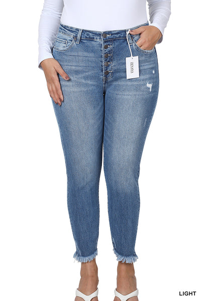 Zenana PLUS HIGH-RISE BUTTON FLY RAW HEM ANKLE SKINNY