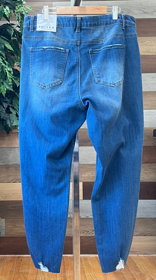 BOYFRIEND DENIM PANTS WITH FRAYED CUFF