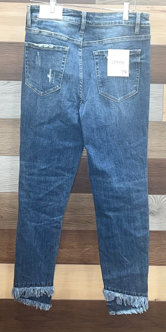 MEDIUM WASH HIGH RISE ANKLE SKINNY DENIM PANTS