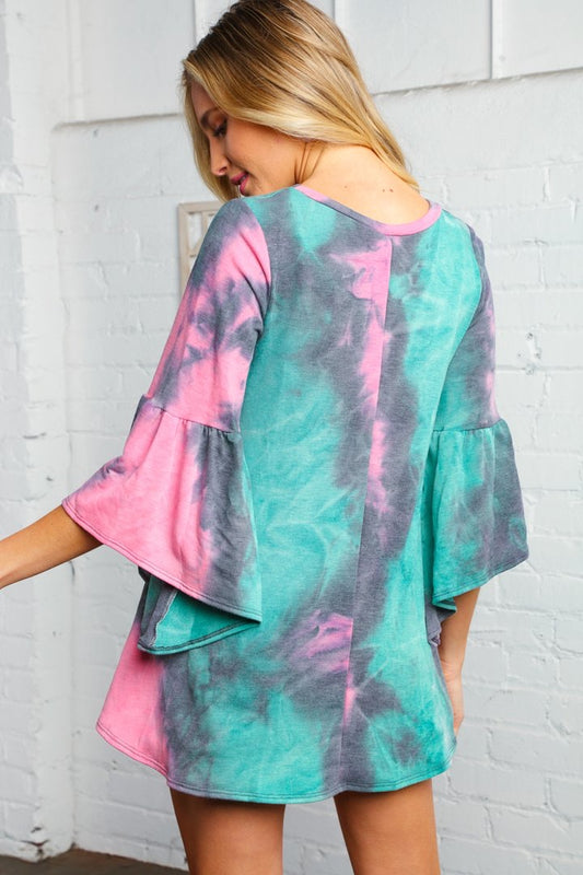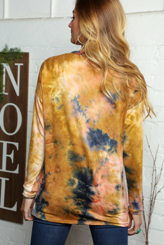 TANGERINE OR RUST TIE DYE PULLOVER WITH PLAID POCKET