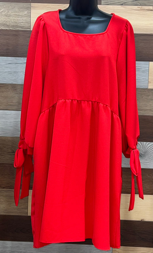 Tie Detail Babydoll Flare Midi Woven Pocketed Dress