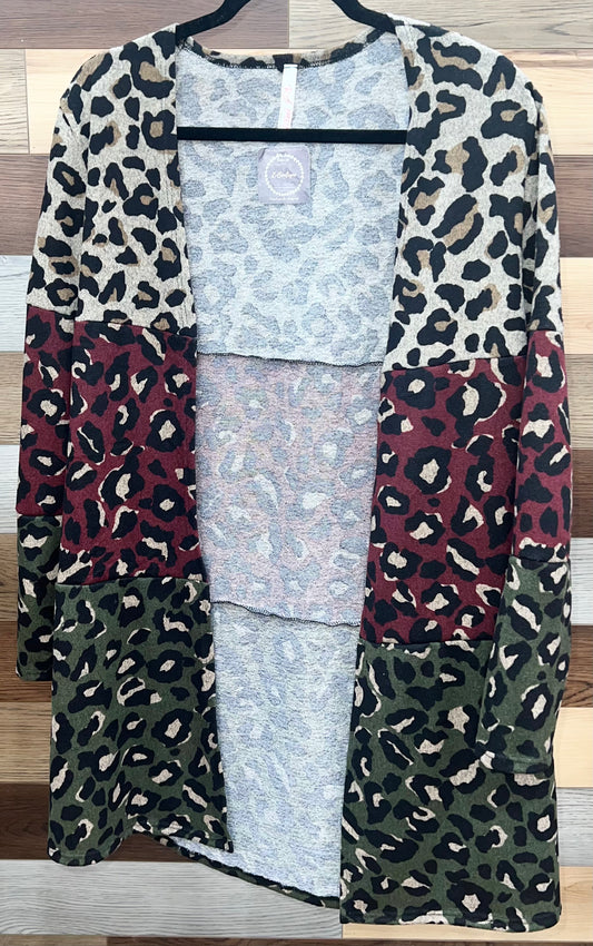 Taupe Spotted Leopard Babydoll Long Sleeve Swing Dress