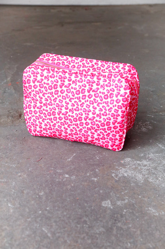 Fushcia Animal Print Gold Zipper Travel Bag