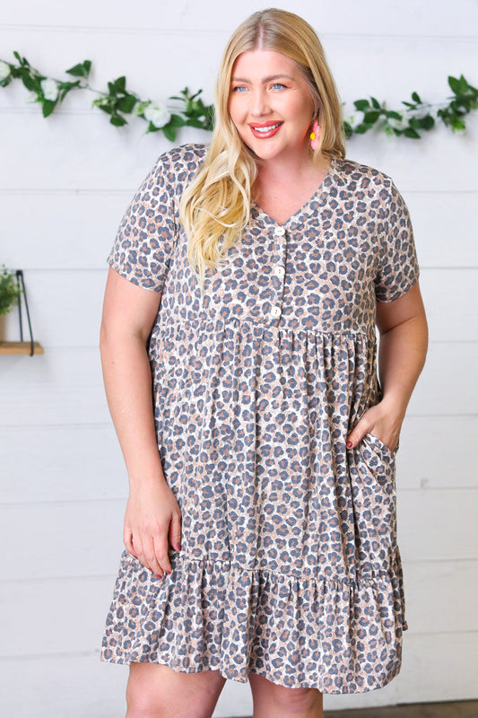 Taupe Leopard Button Down Babydoll Dress
