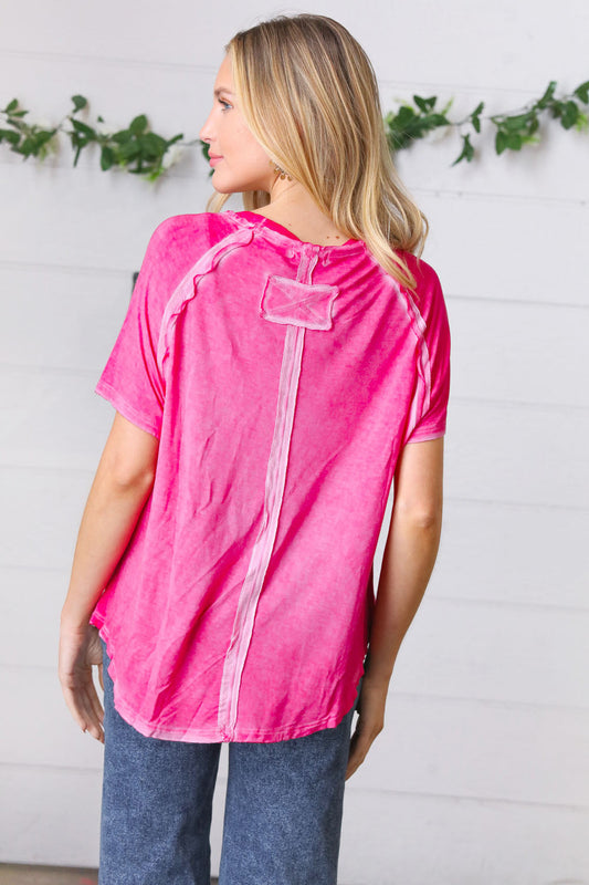 Washed Pink Raw Edge Short Sleeve Top