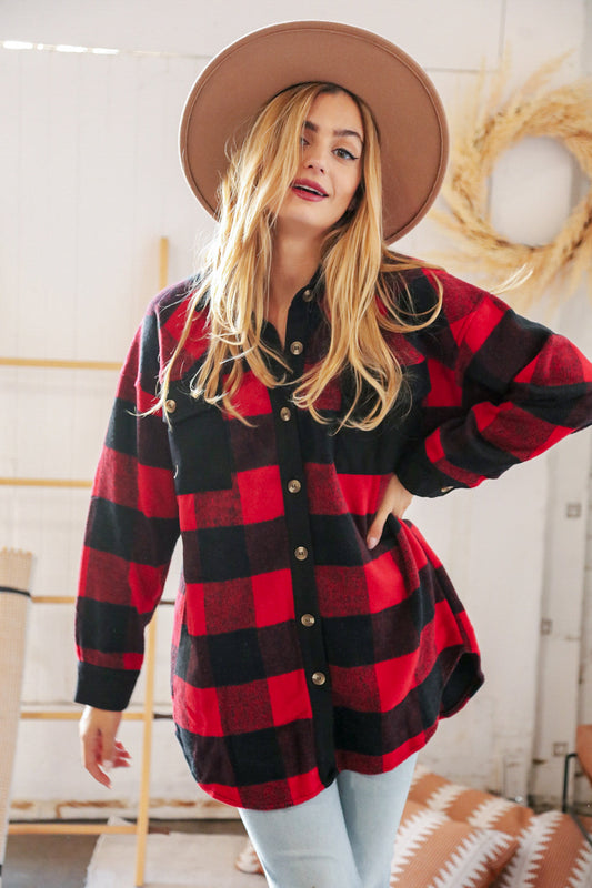 Red/Black Aztec Shoulder Tie Knot Tiered Dress