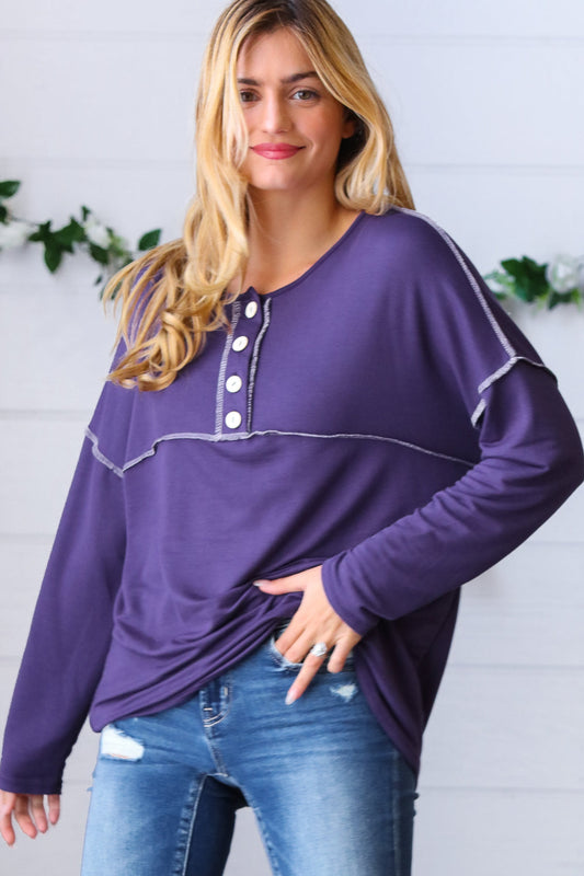 Lavender Two Tone Multi Color Stripe Raglan Top