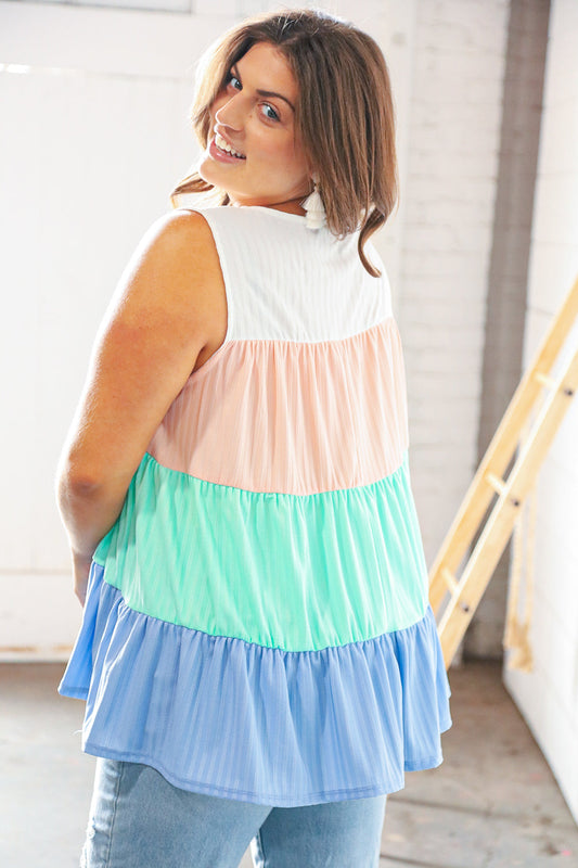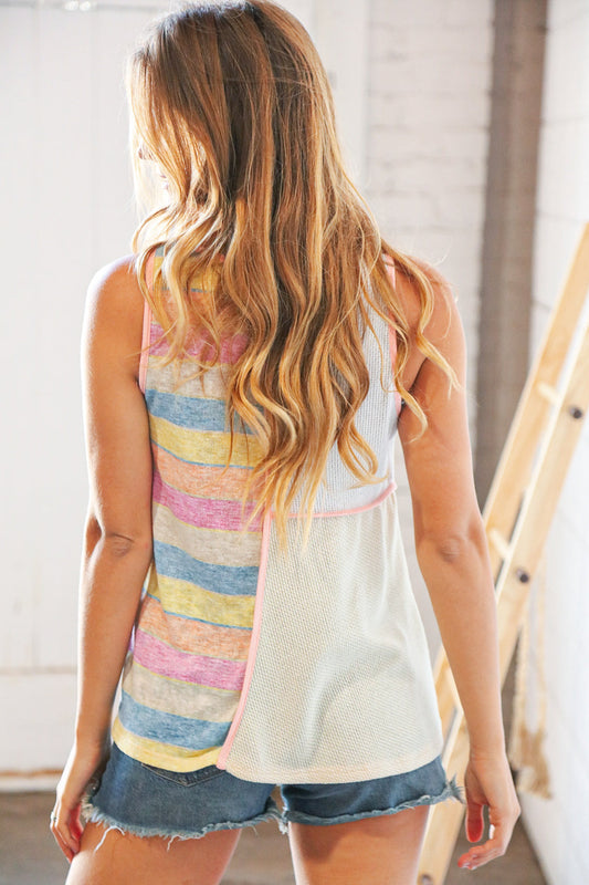 Cream & Peach Pointelle Color Block Swing Tank Top