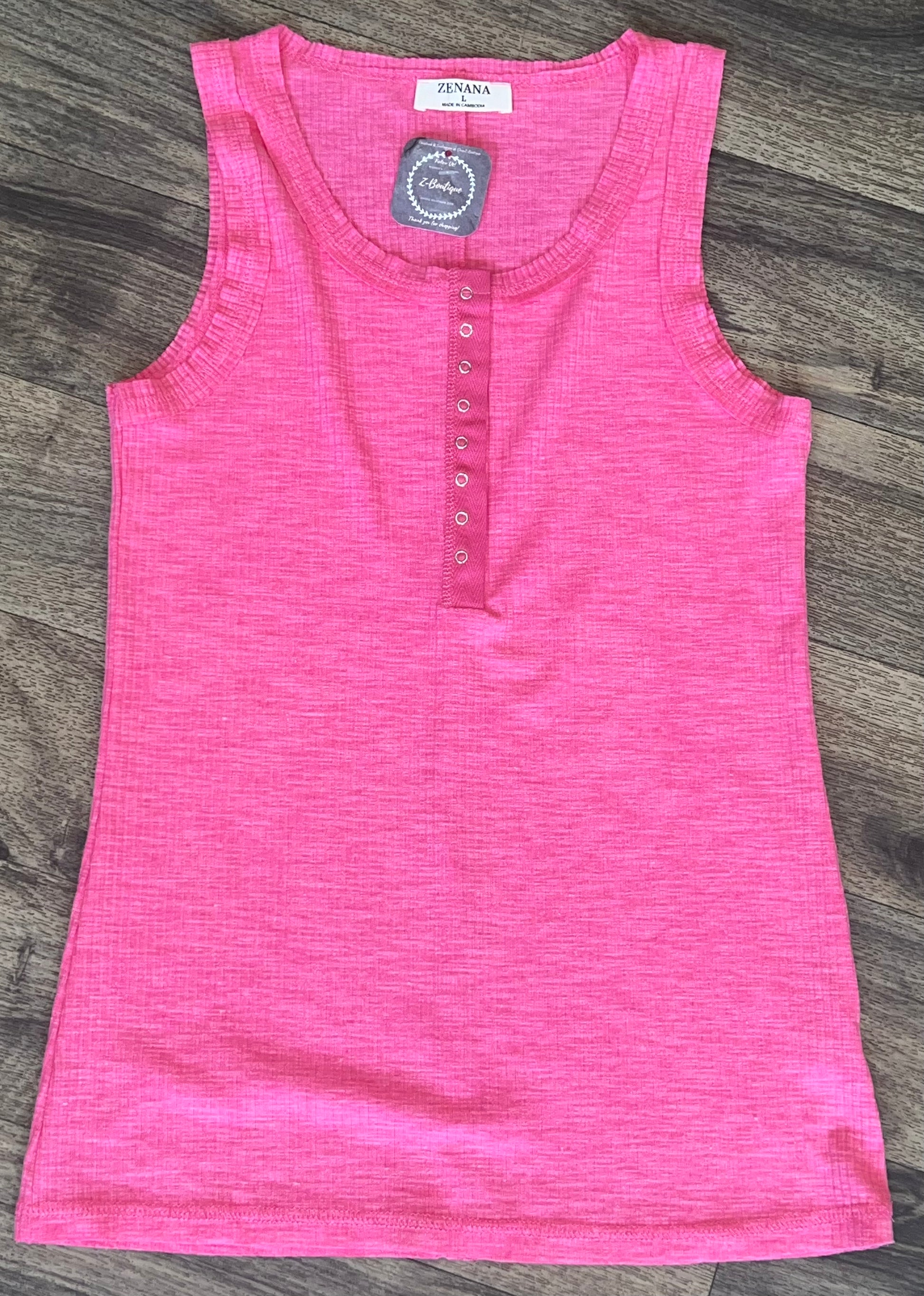 Charcoal or Pink Cotton Rib Henley Button Down Tank Top