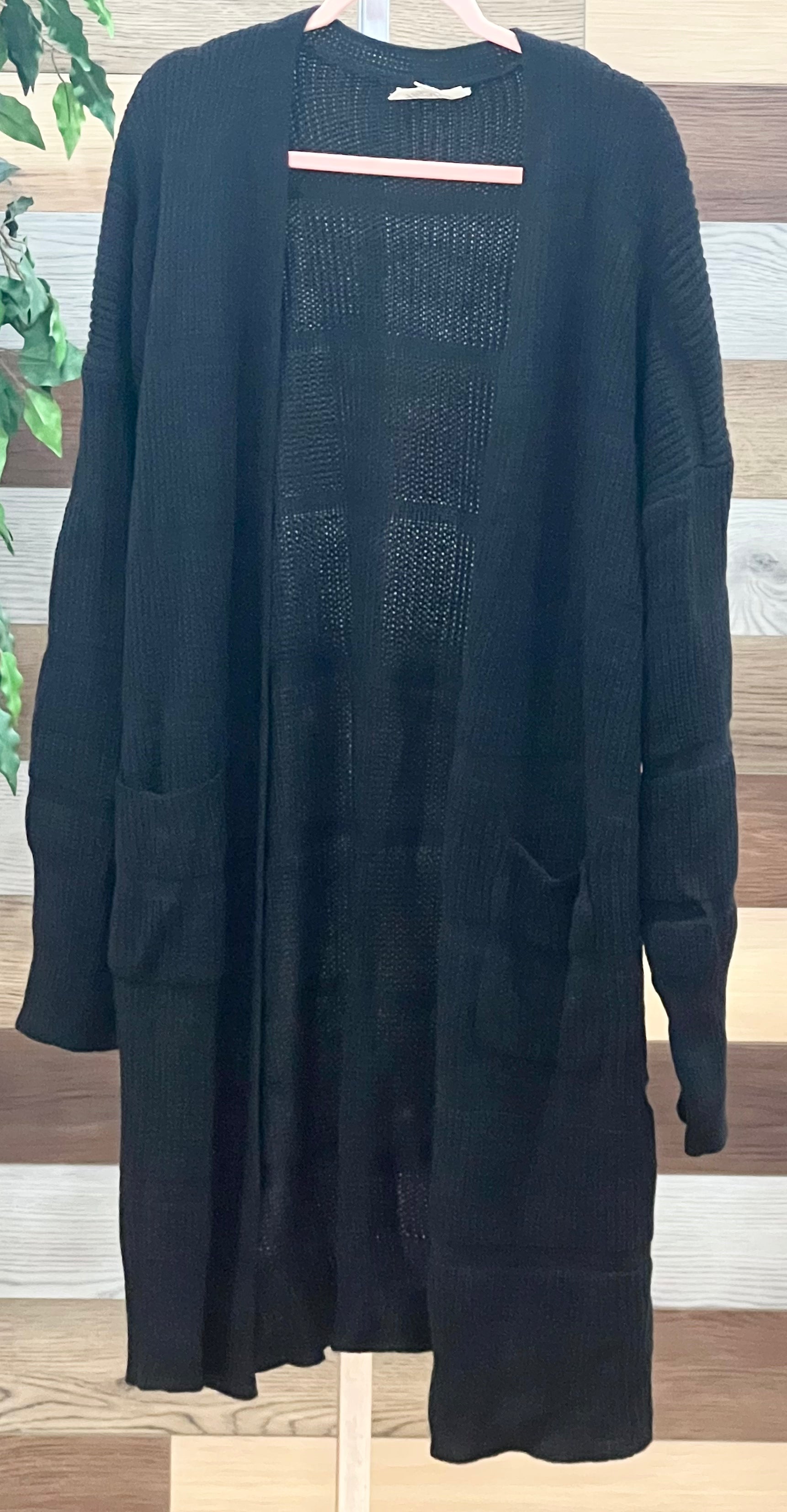 PLUS BLACK OPEN POCKETED CARDIGAN
